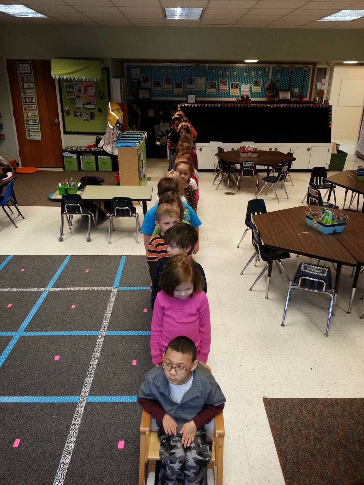 This week we started our next module on measurement. First we talked about height and using words like taller than and shorter than. Check out this picture of us in order from shortest to tallest.
